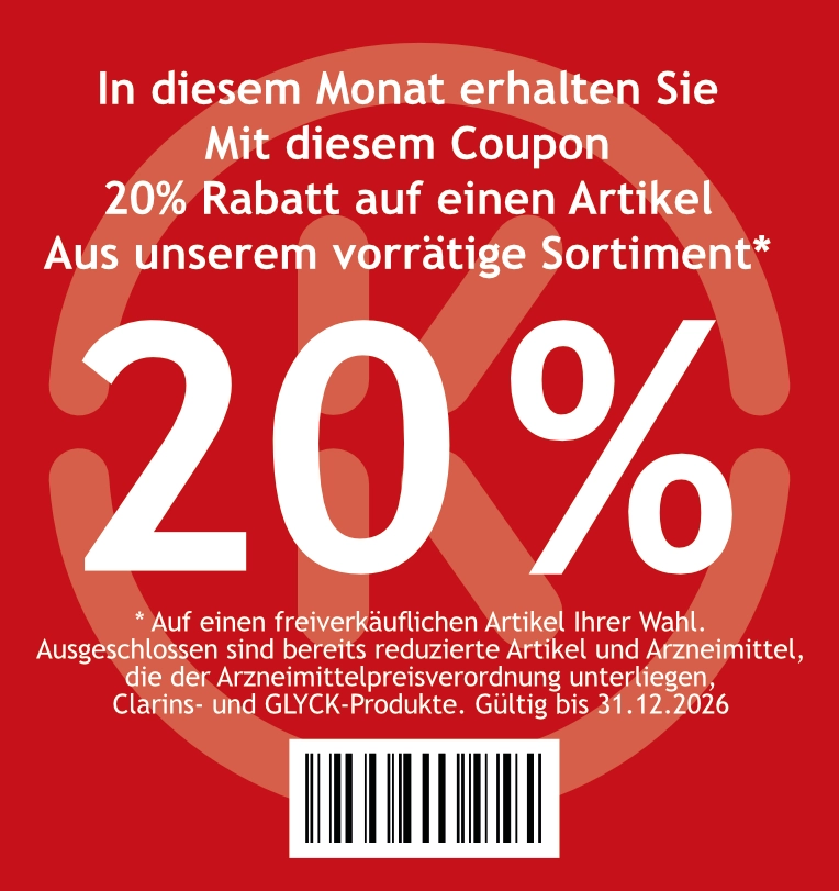 * Apothekenverkaufspreis (AVP). Eigener Verkaufspreis (EVP). Unverbindlicher Verkaufspreis (UVP). Stand 09.12.2025. ** Zu Risiken und Nebenwirkungen lesen Sie die Packungsbeilage und fragen Sie Ihren Arzt, Ihre Ärztin oder in Ihrer Apotheke. Bei Schmerzmitteln: Bei Schmerzen oder Fieber ohne ärztlichen Rat nicht länger anwenden als in der Packungsbeilage vorgeschrieben. Artikel können ähnlich der Abbildung sein. Abgabe nur in haushaltsüblichen Mengen. Für Inhalt und Druckfehler keine Haftung.